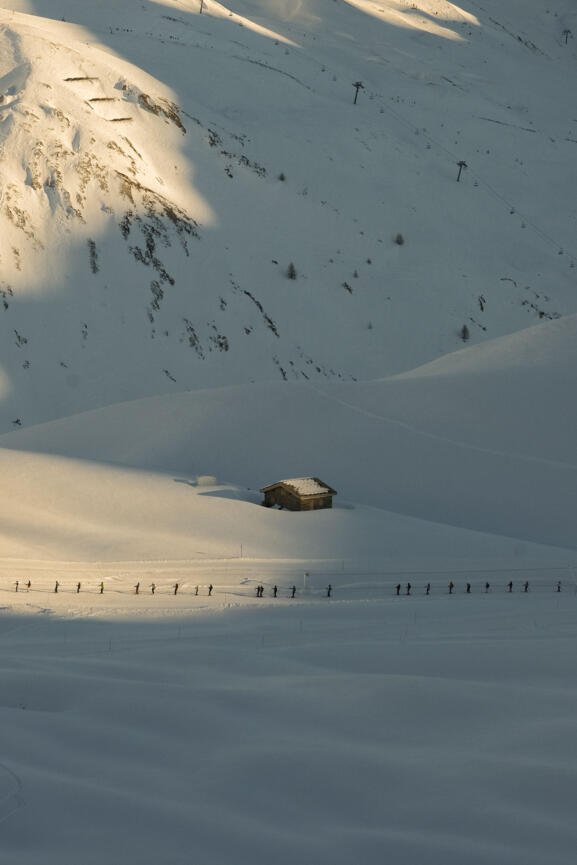 The dense and powdery palettes respond to the dancing lights or elongated shadows that sculpt the mountains.